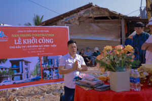 Nam Phong Construction hân hạnh đồng hành cùng gia đình anh chị Vinh – Diệu trong ngày lễ khởi công xây dựng tổ ấm mới. Đội ngũ Nam Phong đã có mặt từ rất sớm để cùng đồng hành cùng gia chủ thực hiện nghi thức cúng động thổ theo phong tục truyền thống, cầu mong công trình khởi đầu thuận lợi – thi công suôn sẻ – hoàn thiện bền vững theo thời gian.